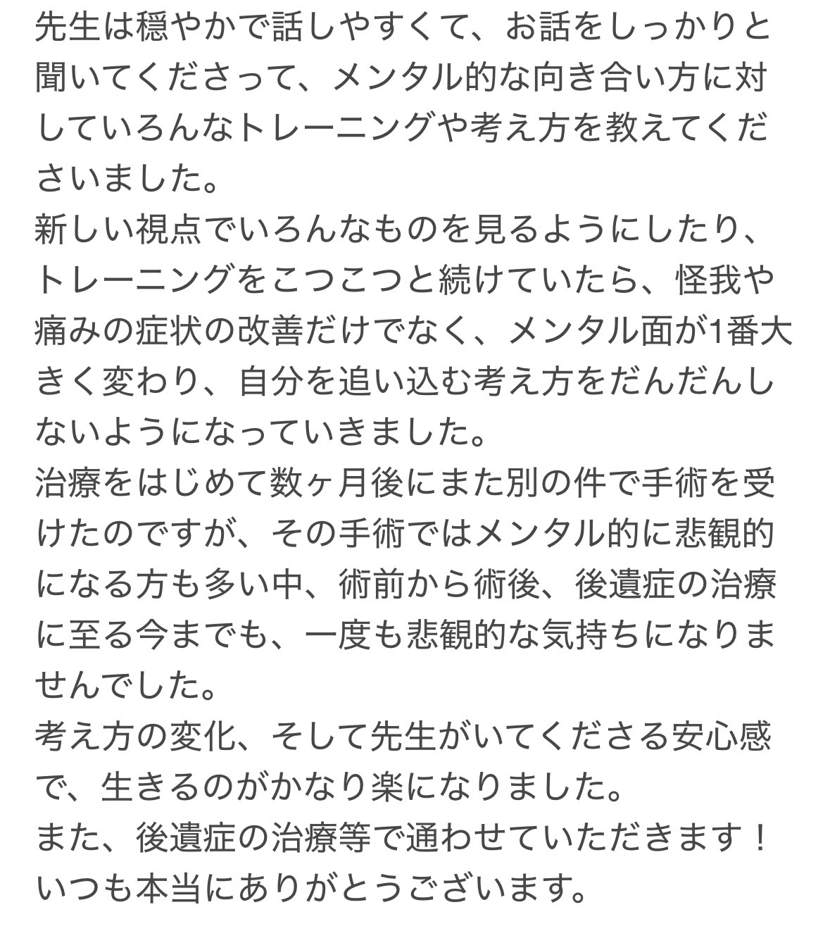 特に心理的ストレスが関わる症状は改善までに時間がかかることもあるため、一律に「何回で良くなる」とは言えません。