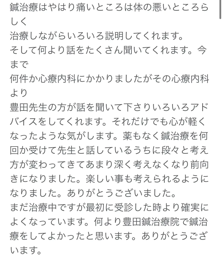 その理解をもとに、心身両面からあなたの状態丁寧に把握して施術します。