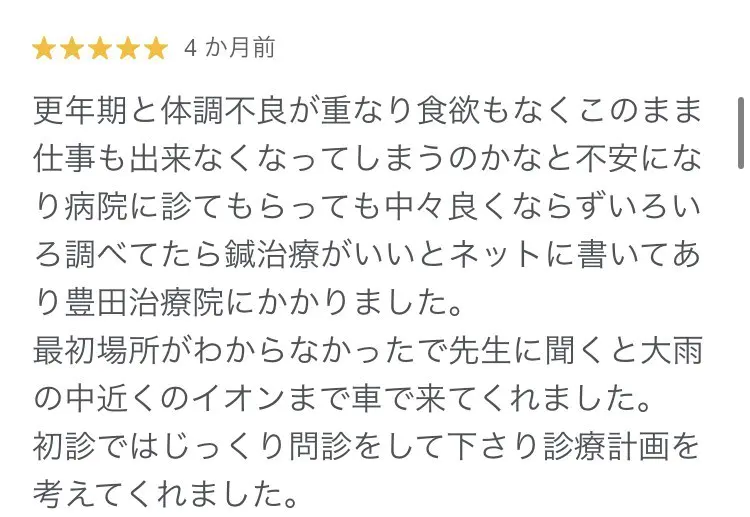 そのため、症状の改善だけでなく、再発を防ぎやすい体質づくりや、生活の中で実践できるセルフケアもお伝えしています。